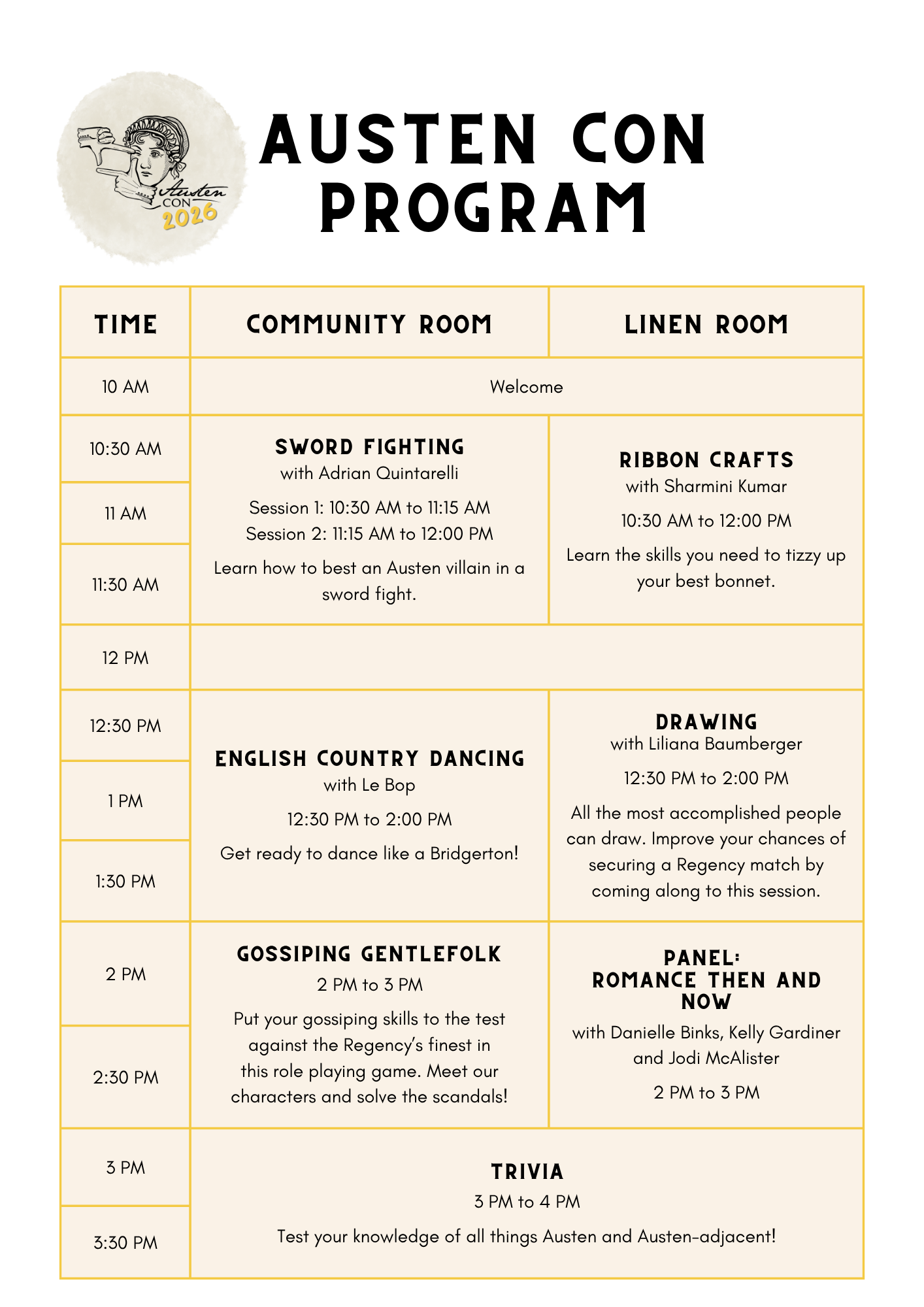 Join us for our annual celebration of Jane Austen and all the things that copied her vibe. We’ll be dancing, sword-fighting, crafting, and talking romance - and we’d love to see you there.